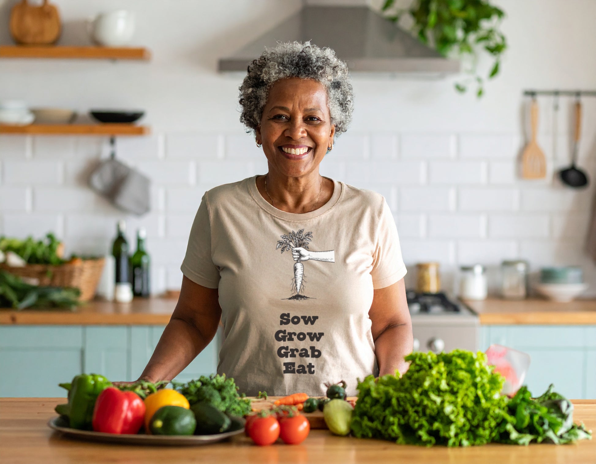 Wear this farm to table gardening tee with pride. Our "Sow Grow Grab Eat” t-shirt is a bold reminder that good food starts with healthy soil and a desire to grow your own. A perfect gift for farmers, foodies, and backyard growers.